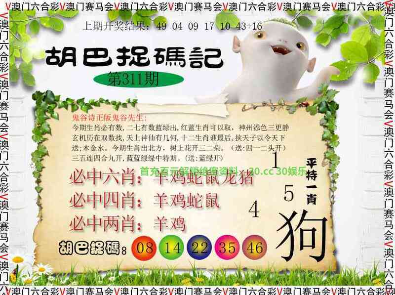 ╠解胡巴抓码记╣314期:今期生肖二五头,二上三下有玄机,红蓝特码红最好,风云龙虎四门开是羊是鼠自己查,成双成对又分开,虎鸡兔牛马肖死,沦落风尘姿婀娜送;土木金。一国春风三十四,妹子钟情便绸塞。(送:四零一头开)二九合成桂花香,单数有奖红也是。(送:红蓝开) |